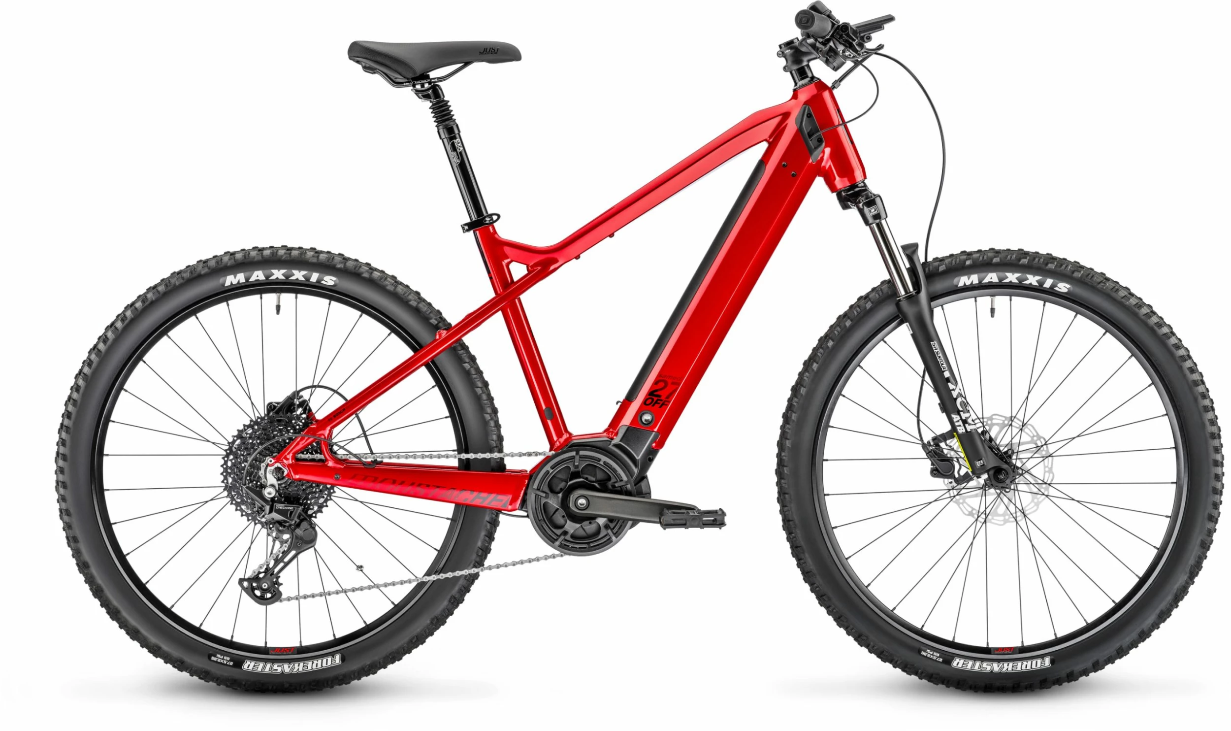 Roues | jantes Moustache, asymétriques, aluminium 6061E, soudées, 32 trous, 27.5″, largeur interne 23mm avec moyeux Avant : Shimano, 32 trous, 9x100mm, serrage rapide // Arrière : Shimano, 32 trous, 9x135mm, serrage rapide |