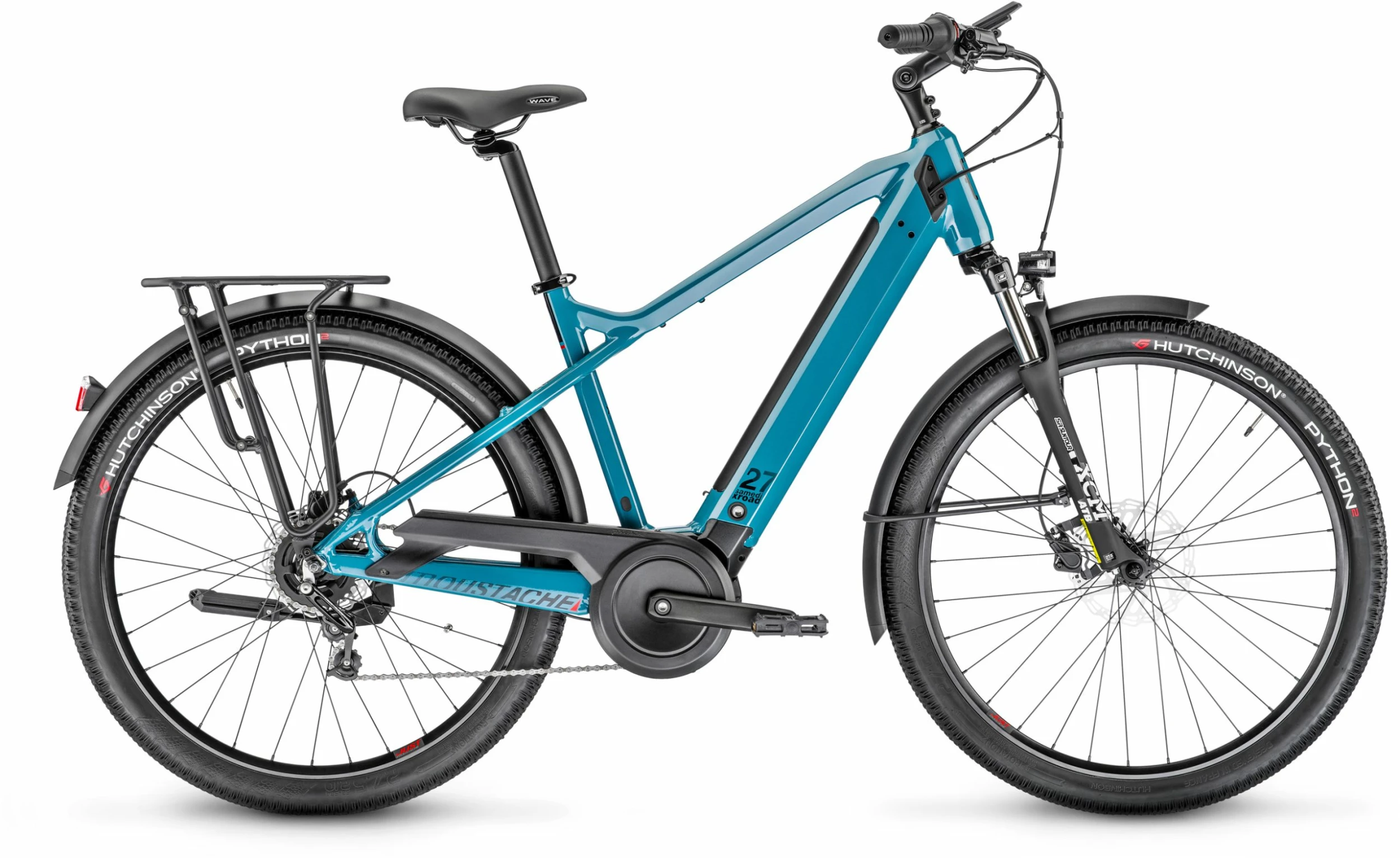 Roues | jantes Moustache, asymétriques, aluminium 6061E, soudées, 32 trous, 27.5″, largeur interne 23mm avec moyeux Avant : Shimano, 32 trous, 9x100mm, serrage rapide // Arrière : Shimano, Nexus, 32 trous, 10x135mm, écrou de serrage |