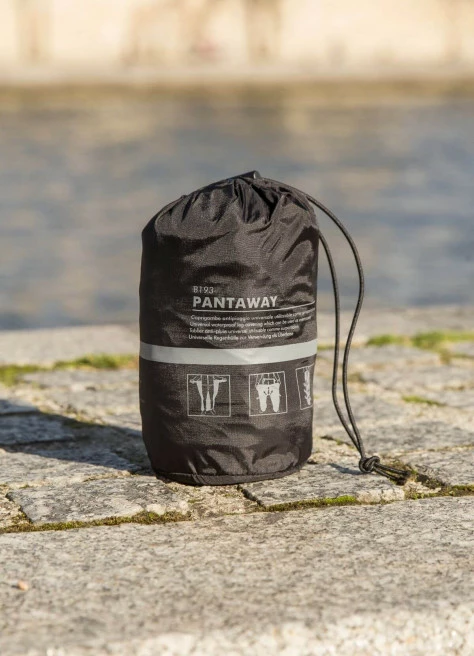 On adore son côté ultra-compact, ce qui permet de le garder avec soi au cas où il se met à pleuvoir. Contrairement à un pantalon classique, il s’attache à l’aide scratchs ce qui permet de le mettre sans enlever les chaussures. Clairement un indispensable surtout vu la taille pliée. Un détail intéressant, la pochette permet de replier le pantalon humide sans mouiller le reste de son sac !